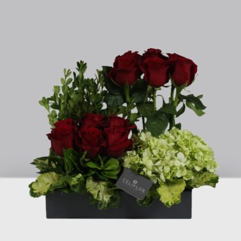12 Rosas rojas y Hortensia