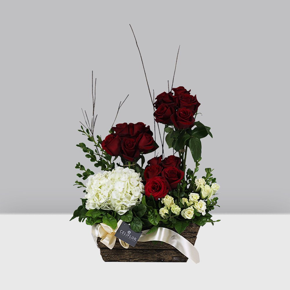 15 Rosas rojas, Hortensia y Mini Rosa