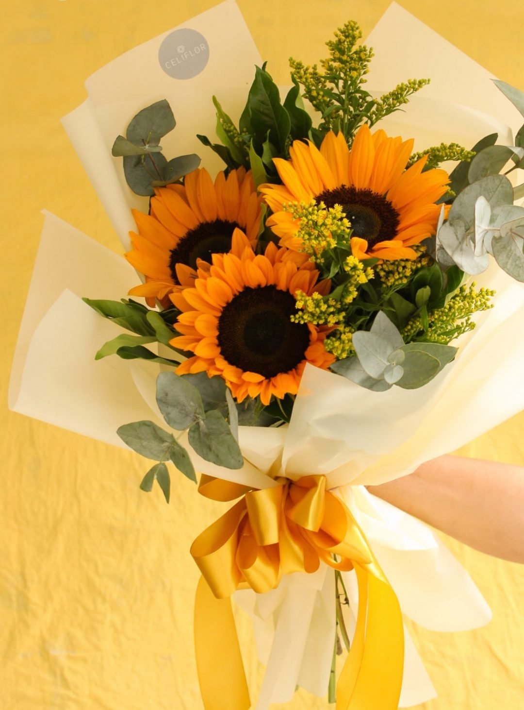 Ramo de tres girasoles arreglado.